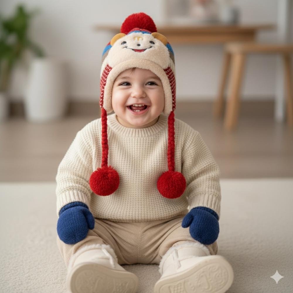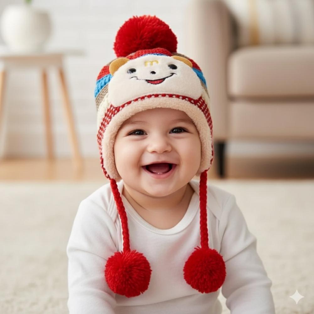 قبعة اطفال شتويه مبطنه فري سايز